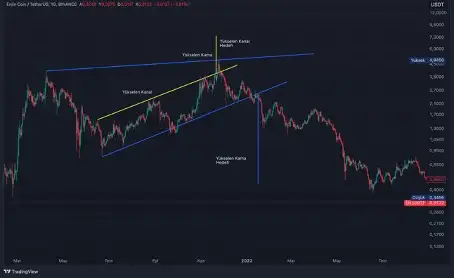 Birçok fenomende gözlemlediğim bir durumdan örnek vermek istiyorum. Şahıslar öncelikle aşağıdaki grafiğin sol tarafına bakarak bunun bayrak-flama örneği olduğunu söyleyerek daha üstleri hedefleyeceğini söylemekte, sonrasında aşağı taraflı gittiği durumda bayrak-flamanın başarısız olduğunu ve tıpkı oranda aşağı istikametli gideceğini argüman etmekte, akabinde grafiklerini alçalan üçgen grafiğine çevirmekte, o da çalışmayınca yükselen kanal formasyonu olduğunu belirtmekte ve en son yükselen kamaya döndüğünü tabir etmektedirler. Görülebileceği üzere bunun bir hududu yoktur ve fiyat hareketine nazaran daima fikir değiştirmek bilhassa kendi paranızla süreç aldığınız bir senaryoda ferdî güzel oluşunuz, psikolojiniz ve bakiyeniz için hiç sağlıklı değildir.